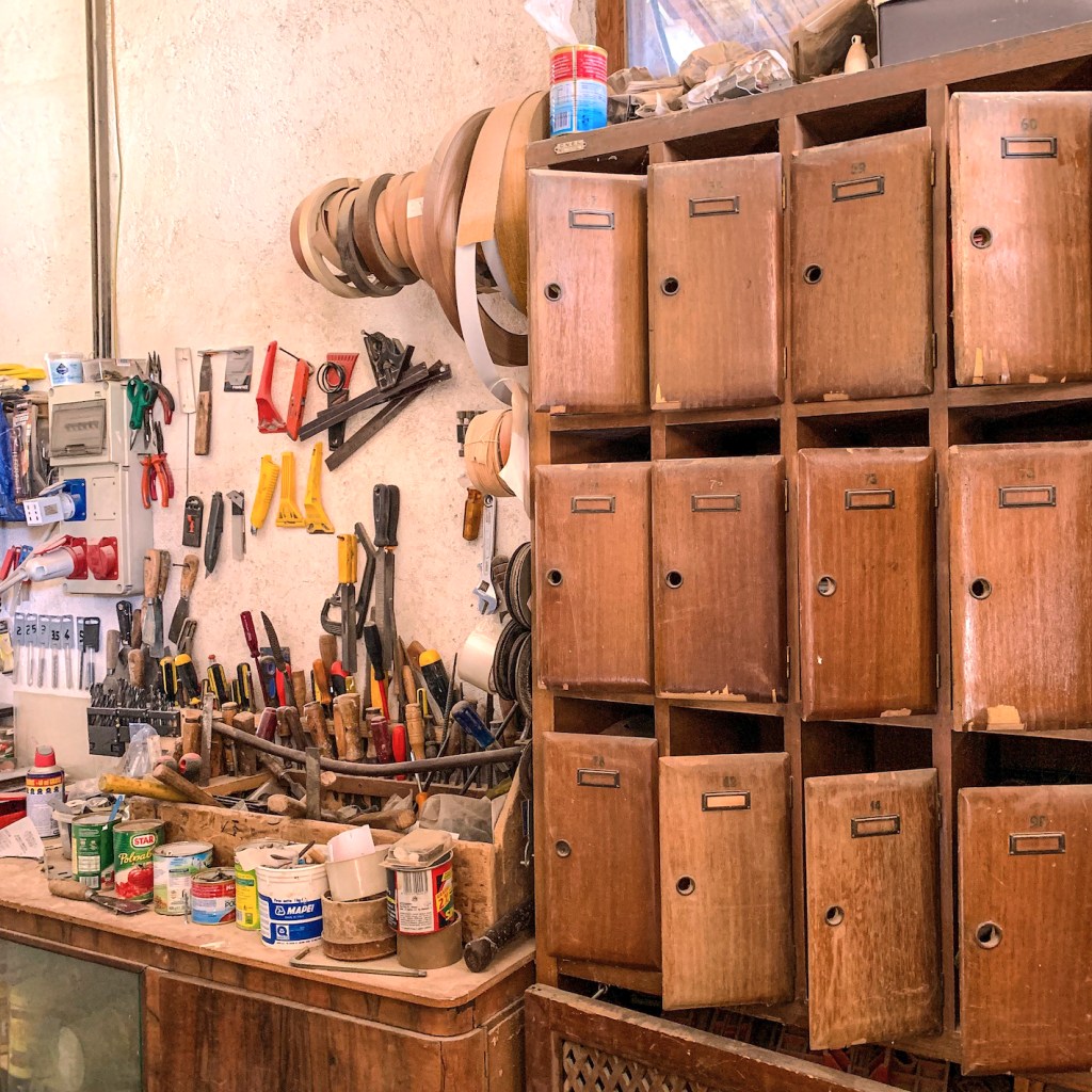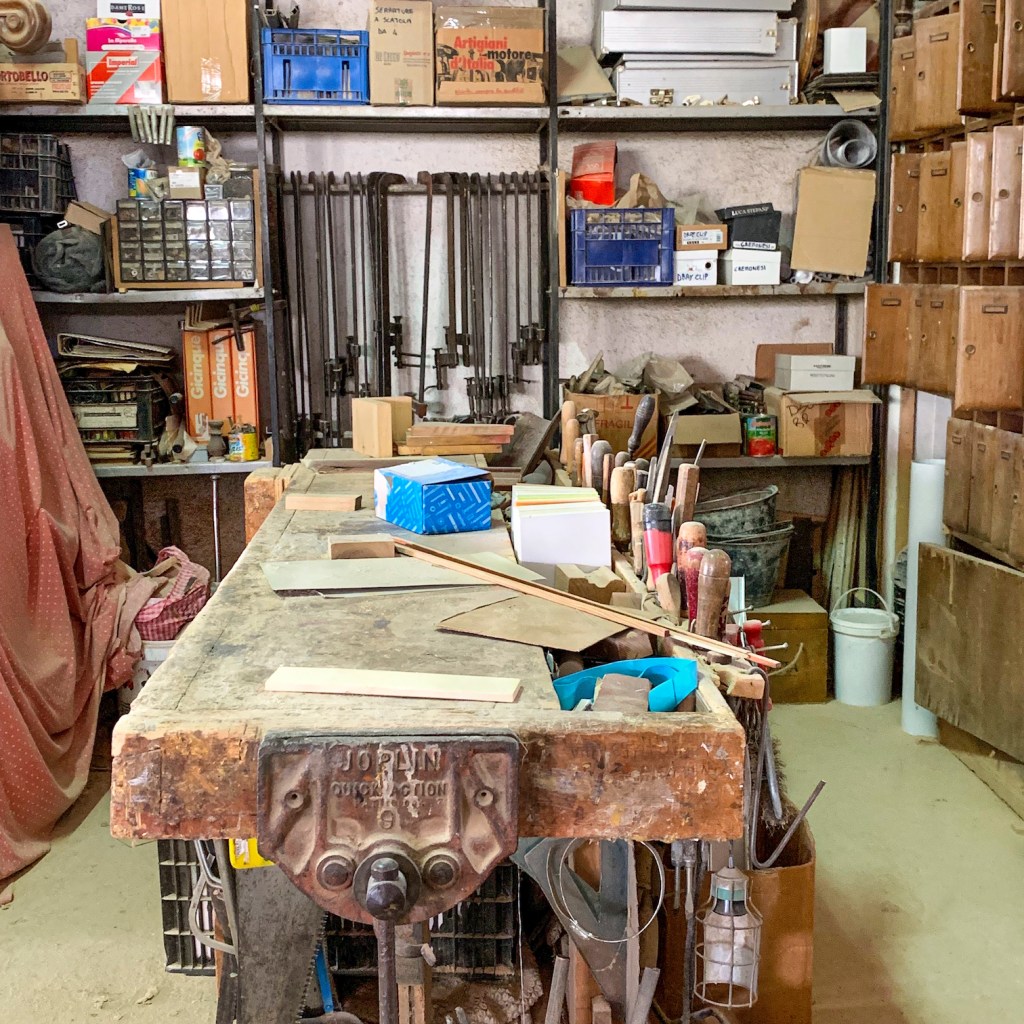 A quel punto, Paolo, il figlio, con un percorso simile ma anche diverso alle spalle – la sua formazione non è avvenuta solo in bottega ma anche frequentando l’Istituto d’Arte – è subentrato al padre. È Paolo oggi gestisce la falegnameria (anche se Luciano non lo perde di vista e non lesina consigli).
