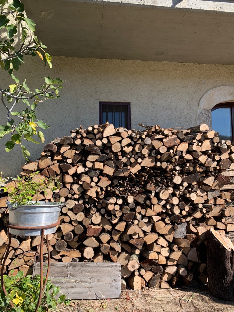 Solo in casi indispensabili, si tratta di materiale acquistato, in questo caso legna da ardere. Sono 15 anni che usiamo il camino nelle giornate invernali (a 850 m, ai piedi del Gran Sasso, è indispensabile!). Dopo il primo carico, quest’anno si è reso necessario il secondo. Abbiamo esaurito tutto quello che produciamo (potature stagionali e legno di alberi che si sono seccati naturalmente o che abbiamo trovato già secchi).