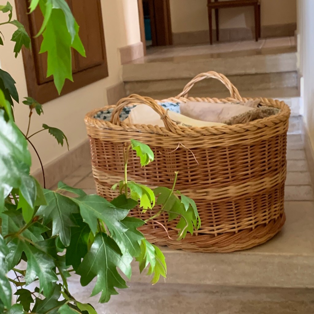 Altri angoli disponibili in casa, non ce ne sono. Né potrei rinunciare al grande cesto di recupero che deve essere nato per il trasporto a dorso d’asino!