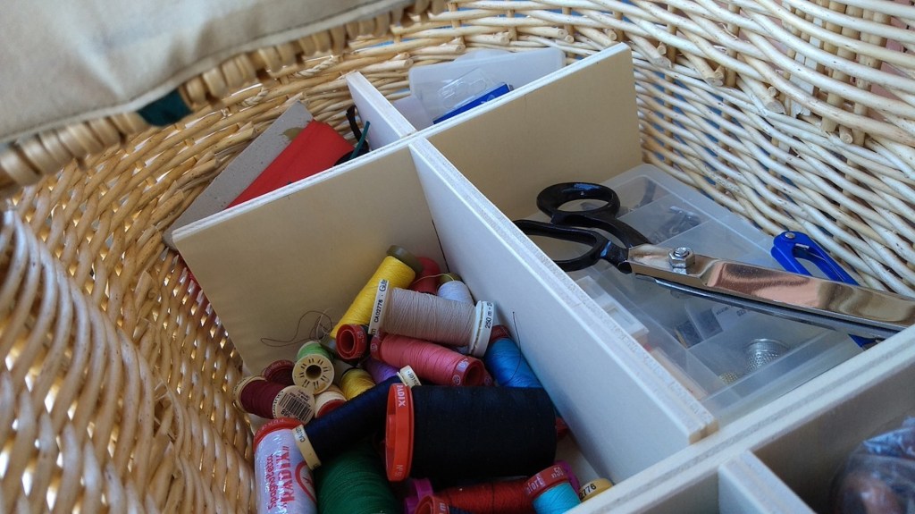 Osservo le foto. Non è un semplice cesto: è un adattamento un po’ speciale. È diventato un bellissimo cesto ‘portalavoro’.