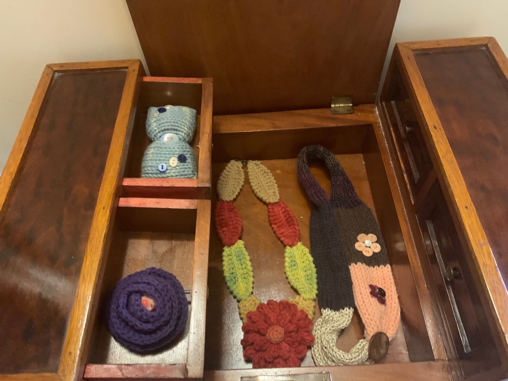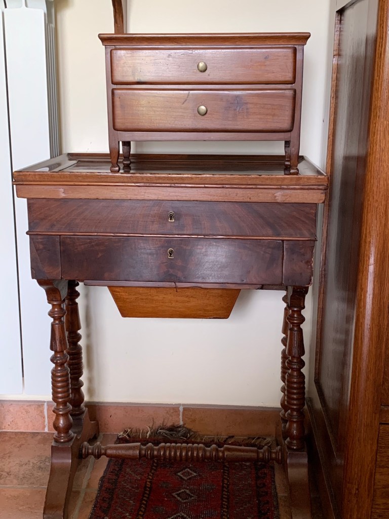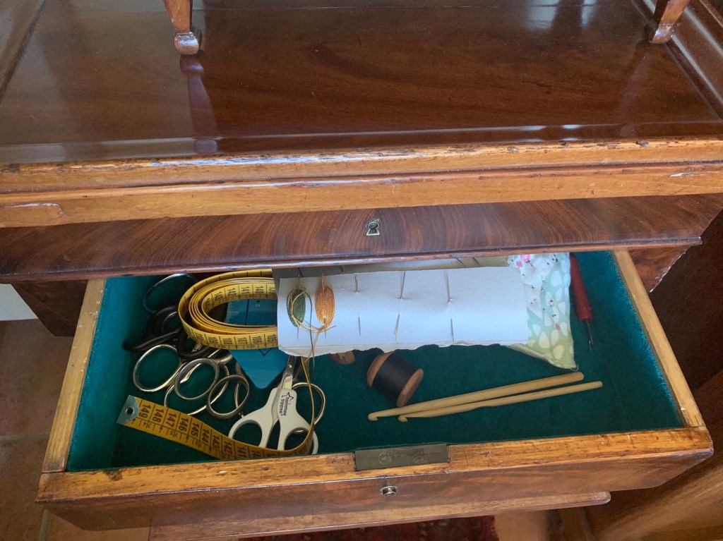 Lungo la strada dell’antiquario, a Viterbo, il negozio di antiquariato non c’è più, ormai da molti anni. L’antiquario ha dovuto rinunciare di fronte al nuovo che avanza. Per mio padre fu un brutto momento. Passava parecchio tempo a chiacchierare con lui. E ogni tanto acquistava piccole cose per la mamma. Alcune le ho recuperate e sono qui in casa. Tra queste, i mobiletti portalavoro.