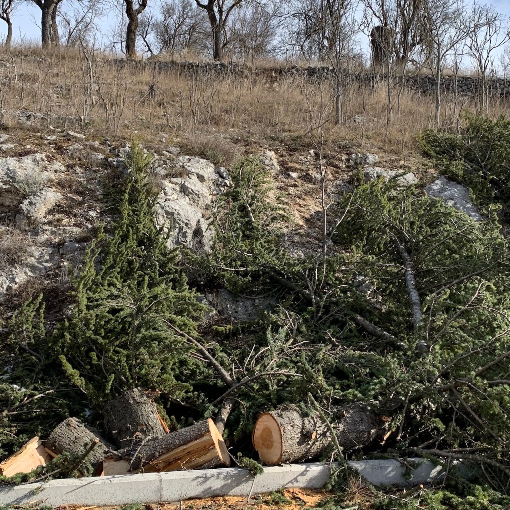 Un giorno, mentre salgo verso la cima, mi rendo conto che qualcosa non va. Non c’è dubbio, gli aghi stanno ingiallendo. Il processo è ancora all’inizio ma il cedro sta vivendo una lenta agonia. Passano alcune ore e si scatena una tempesta di vento fuori dall’ordinario (quest’anno niente pioggia ma ogni variazione di temperatura comporta almeno un paio di ore di vento improvviso e violento). Nel tardo pomeriggio, quando passo di nuovo dalla stessa strada, buona parte del cedro è a terra. Il vento lo ha spezzato. I rami sono già stati tagliati e accantonati lungo la strada a monte. Fine di un albero che, forse, si ergeva troppo dritto e isolato al punto da diventare il bersaglio del fulmine!