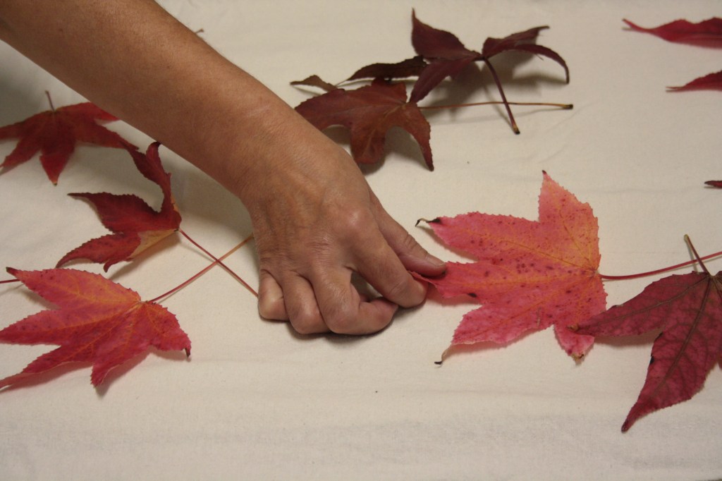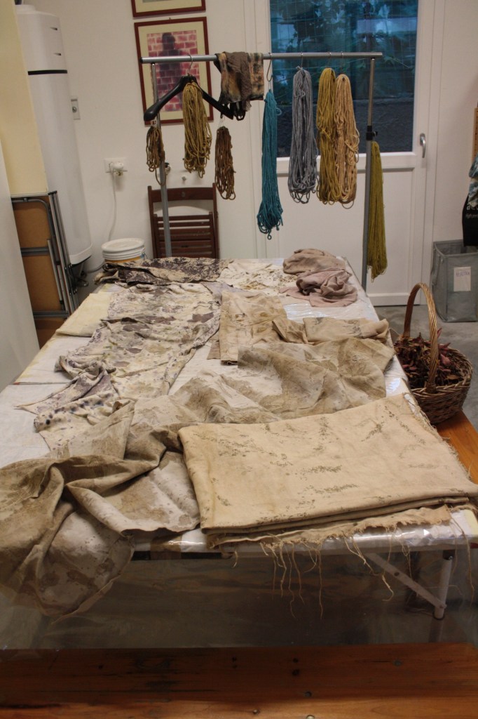 Mi piace raccogliere materiali vegetali: foglie, cortecce, radici, frutti, semi, fiori e testarli su tessuti diversi, ricercare su testi antichi le mordenzature tradizionali, documentarmi leggendo testi di botanica, mantenere contatti con tintori di tutto il mondo.