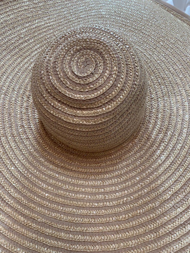 Silvia lo osserva. Si tratta di vera treccina, la lavorazione tipica della paglia nella zona di Firenze, famosa per i cappelli, per il Museo, per il legame con il mondo britannico nel campo del costume e dell’arte.