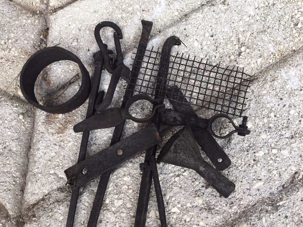 Così, adattando lo spazio cucina a laboratorio, ho dato il via alla sperimentazione, distribuendola su più giorni. Come prima cosa ho mordenzato i tessuti in un bagno ferroso, disponendo nella pentola una serie di vecchi oggetti di ferro, presenze tipiche nella casa di chi, come me, ama conservare tutto perché ‘anche gli oggetti hanno una storia’ e, poi, ‘non si sa mai, possono sempre servire’.