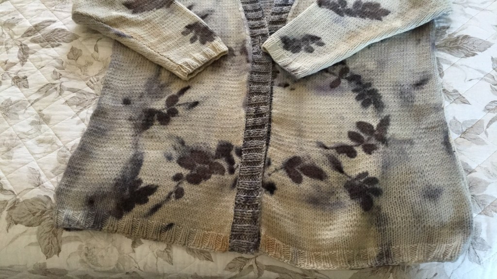 Ecco il risultato: un cardigan disseminato di magnifiche foglie di rosa, direttamente dal giardino di Michela!