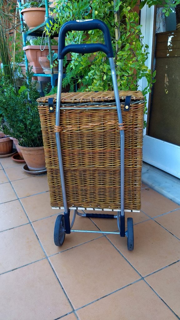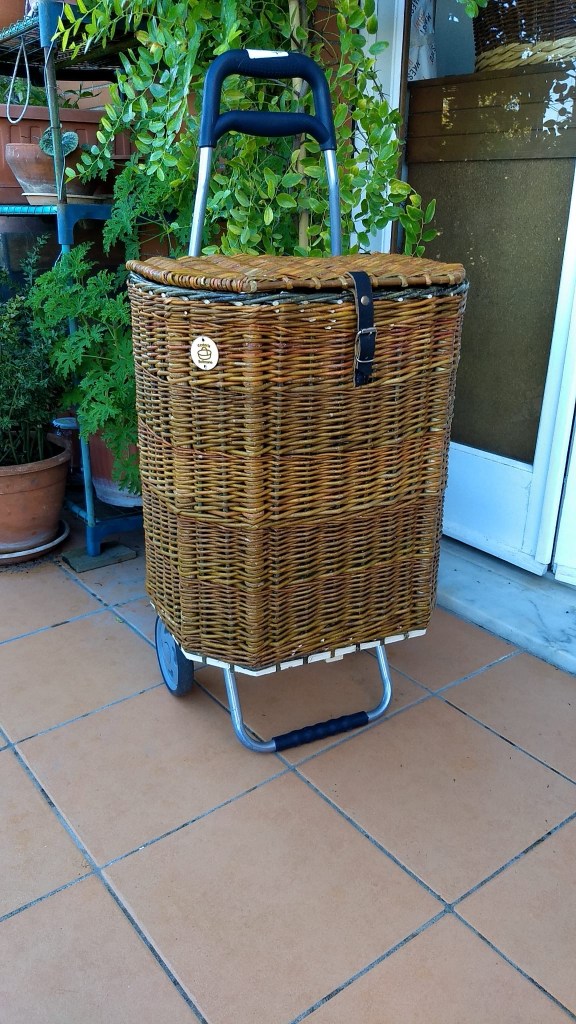 I cesti mi sono sempre piaciuti, mi ricordano i tempi in cui le buste di plastica non esistevano. Esistevano le buste di carta (quelle del pane!) e i cesti. E sono rimasta sempre dell’idea che sono infinitamente migliori e con questa idea in mente, ho continuato ad usarli pervicacemente, ogni volta che è stato possibile. Quando Nico ha pubblicato la foto del carrello di vimini, realizzato sulla base di un carrello della spesa ‘normale’, ormai inservibile. Senza neppure pensarci, gli ho inviato un messaggio: “se trovo un carrello vecchio, lo faresti?”. Nico non è tipo che si tira indietro rispetto alle sfide, sempre con il dubbio di non essere in grado: “ci posso provare”. In realtà, è perfettamente in grado!