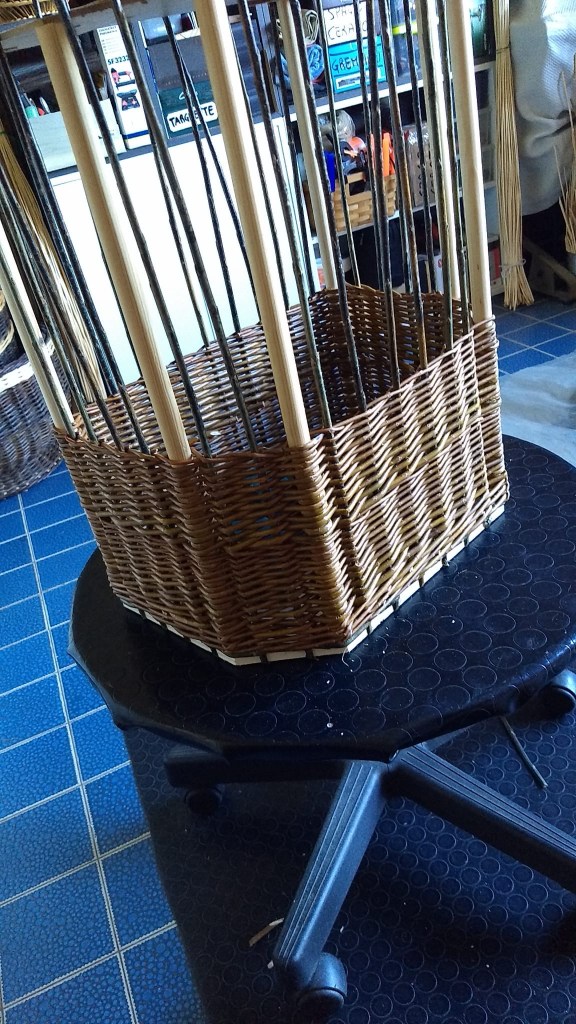 Poi, un giorno, qualche mese fa, Nico Solimano, di professione cestaio, ha pubblicato un carrello della spesa in fase di trasformazione. Ora, io conosco Nico da alcuni anni, da quando ho organizzato un corso di cesteria in paese, in una bellissima cornice architettonica. Seguo il lavoro che fa, ho fatto rifornimento di cesti di varie misure e di varie fogge per le mele, le patate, le noci, le mandorle, le verdure, le pigne, la legna, i fiori secchi, insomma qualsiasi cosa possa essere contenuta in un cesto (mancano le castagne e i porcini, perché nella zona dove dell’Abruzzo dove abito non ci sono, né le une né gli altri. E per dire la verità, mi mancano, al pari dei ciclamini!).