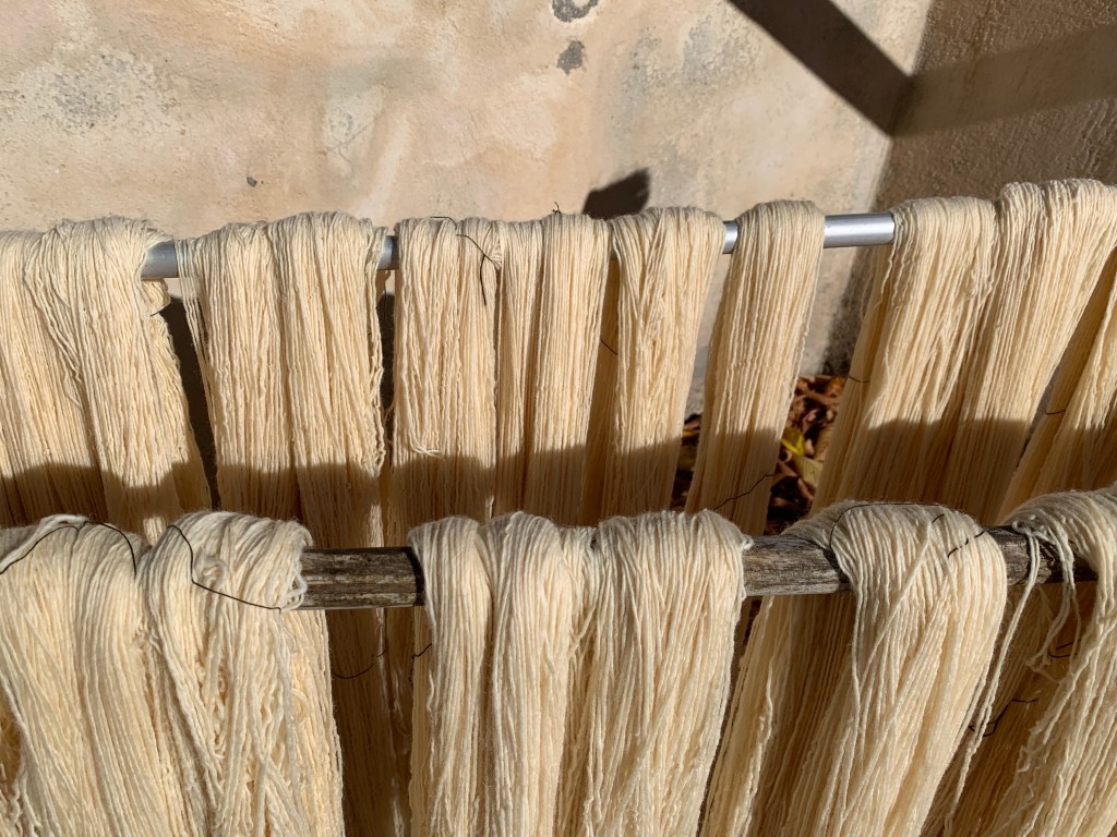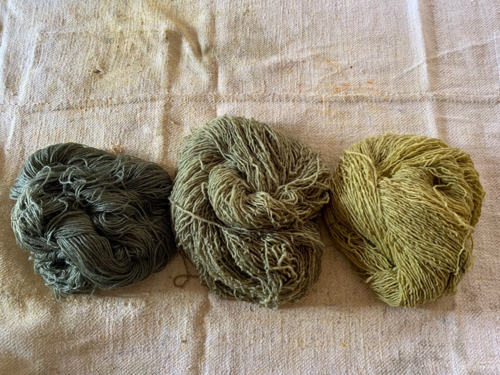 Nella bottega di Valeria, a Santo Stefano di Sessanio, i primi clienti potranno acquistare le matasse di lana di cui hanno bisogno, rigorosamente dello stesso bagno di colore. Alla fine, potrà capitare di trovarne una di un bagno e una di un altro. Non sarà un problema. Gli abbinamenti di diversi colori naturali sono sempre allettanti, tra sfumature di verde ma anche con le altre sfumature di colore che si trovano in bella mostra nella bottega.