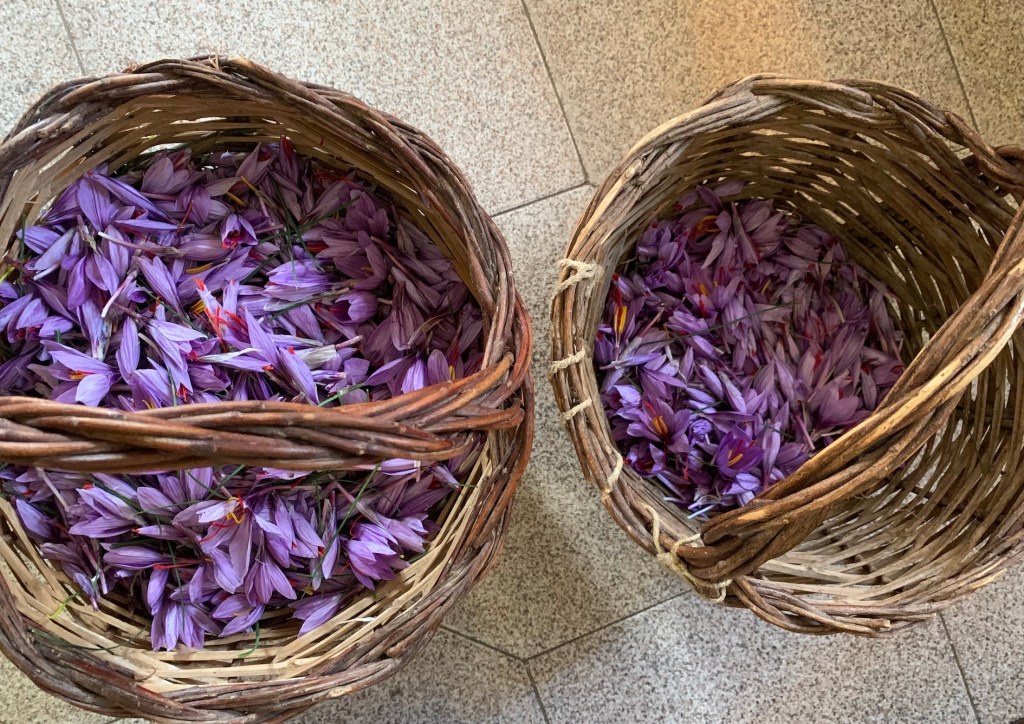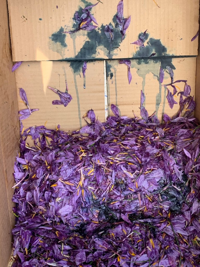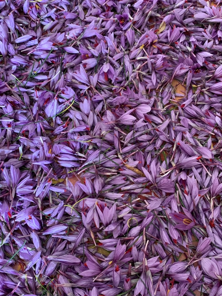 E’ un modo per non sprecare nulla. Il singolo fiore, una volta separato dai fili rossi del prezioso zafferano, non vale nulla ma porta con se il residuo di quell’incredibile abbinamento di viola, giallo e verde tipico di questo fiore tanto piccolo quanto ricco di una spezia arrivata dal Medio Oriente secoli e secoli fa in queste contrade.