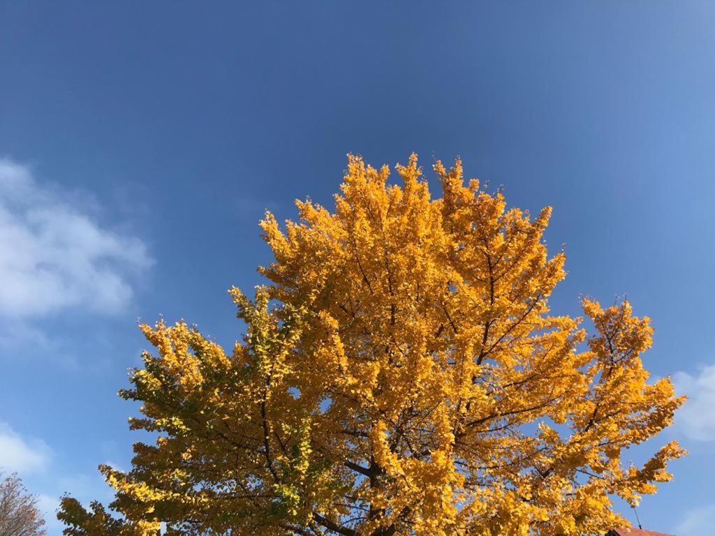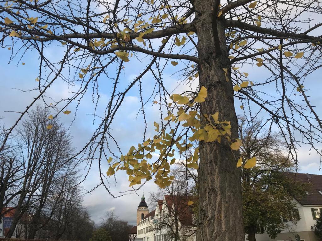 Così, in questo autunno di ripresa della pandemia, ci confortiamo a vicenda con le foto del mio giardino e con quelle del ‘suo’ ginkgo biloba, quello piccolo sul terrazzo del paese dove abita e quello grande sulla piazza del castello proprio di fronte alla sua casa.