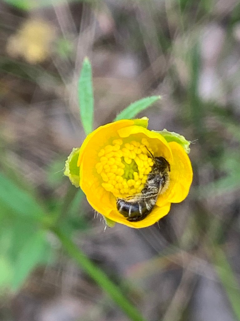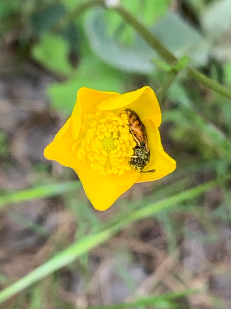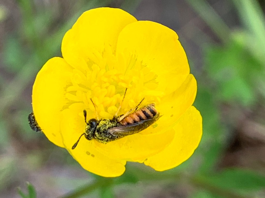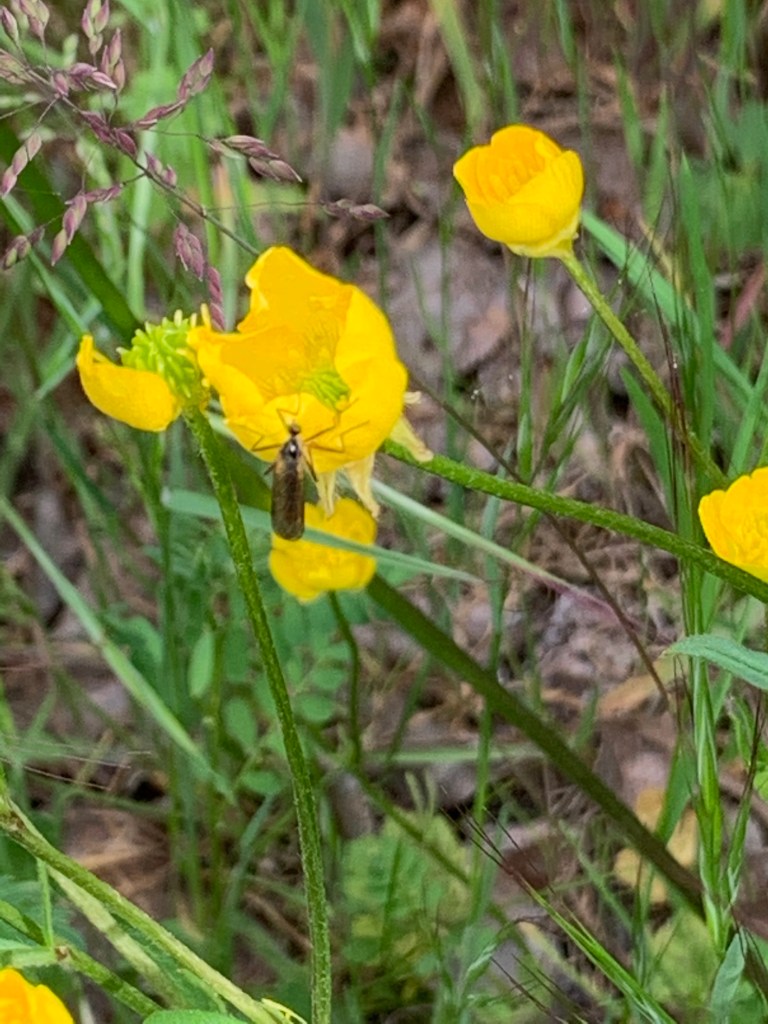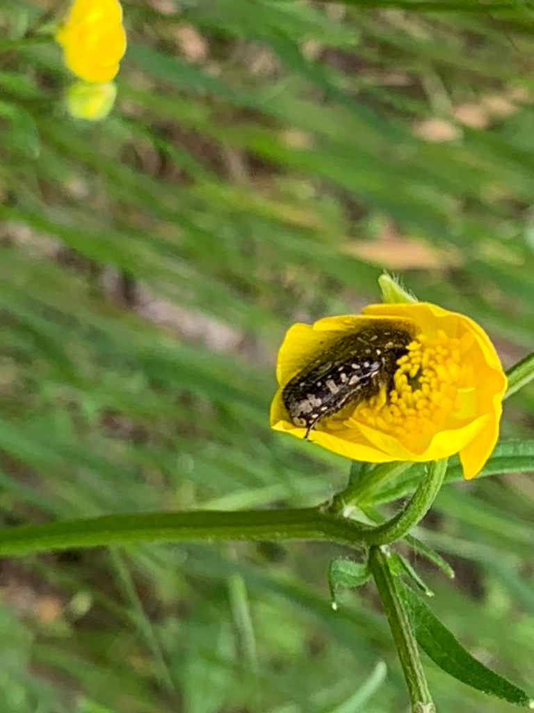 Non sono in grado di riconoscerli e di dare loro un nome – mi dispiace e invidio un po’ chi sa farlo – ma riconosco ditteri (mosche e affini), imenotteri (api) e coleotteri (tutti considerati impollinatori del botton d’oro). Per la verità, intravedo anche quello che mi sembra un ragnetto (araneae).