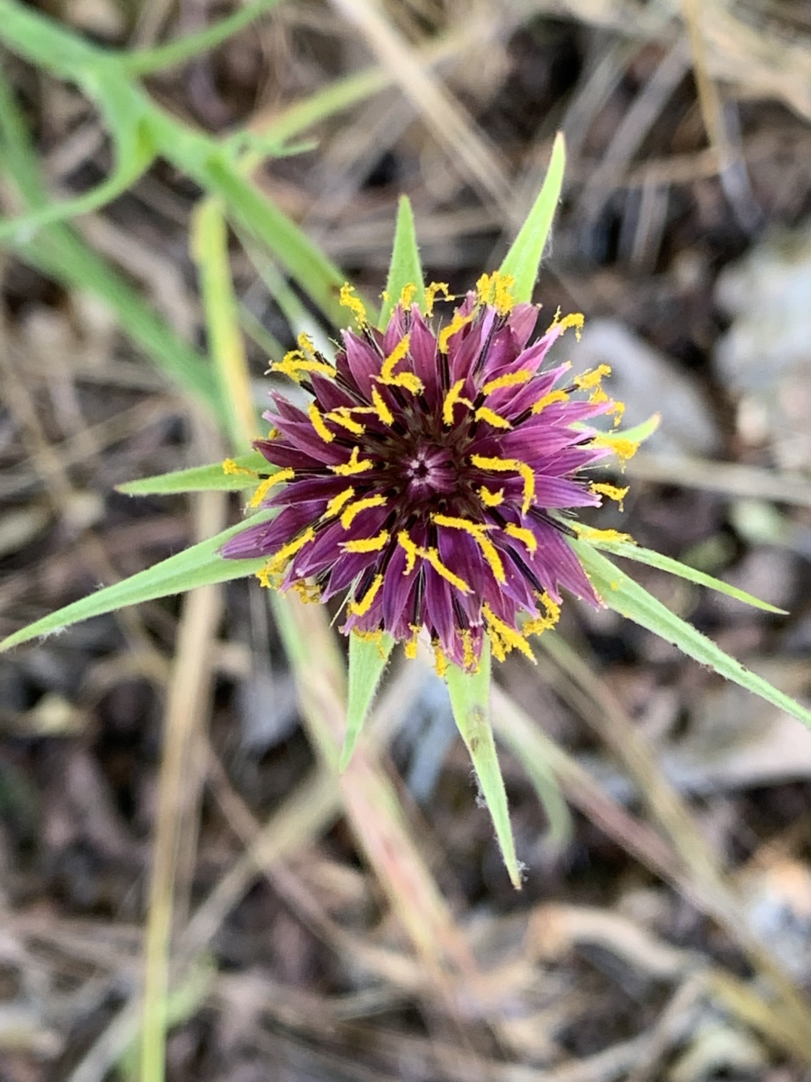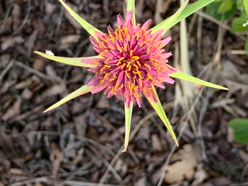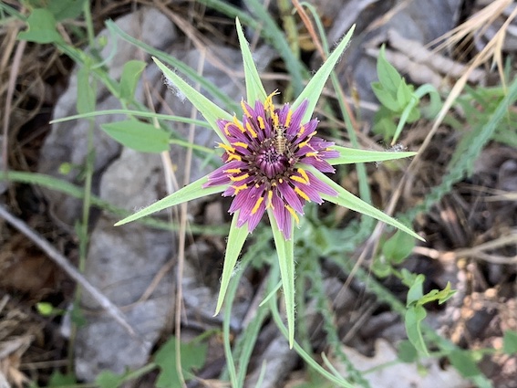 Verso tra la metà e la fine di maggio, in varie località intorno al paese, è apparso in grande quantità il Tragopogon porrifolius L. (o anche Tragopogon sativus), un’asteracea nota come ‘barba di becco’ (niente altro che la traduzione del nome scientifico, tragopogon formato da due termini greci τράγος / trágos capro, ‘becco’ e da πώγων / pógon, barba).