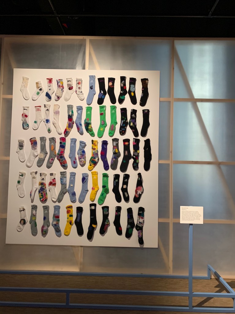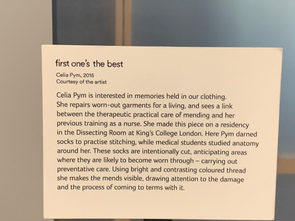 All’entrata, ci spiegano cosa è visitabile, le mostre temporanee, quelle permanenti (Being Human, Medecine Man), la biblioteca e la sala di lettura all’ultimo piano. È uno di quei luoghi dove si può entrare alle dieci di mattina, uscendo alle diciassette, dopo aver trascorso il tempo senza neppure rendersene conto, lontani dalla confusione dell’esterno, e, complici le mostre in atto, uno sguardo diverso su tante cose, compresi i calzini.
