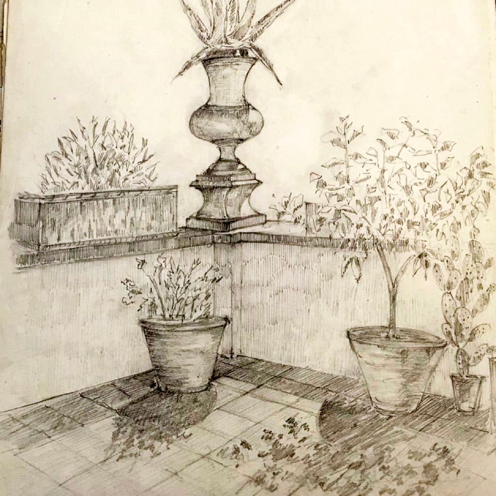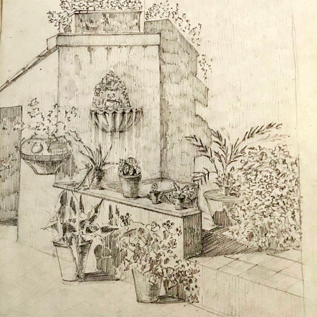 A completare il ricordo, intervengono due disegni in cui la mamma ha catturato con la matita altrettanti scorci del terrazzo di quella stessa casa, qualche anno prima del mio arrivo, quando ancora disegnava e aveva in progetto di dedicarsi all’insegnamento dell’arte. Un bel progetto, naufragato nel nulla (e del quale non ha mai più parlato, neppure di sfuggita). Una bella responsabilità scoprirlo tra le carte, fuori tempo massimo per riparare in qualche modo, se non con la memoria e con il cuore.