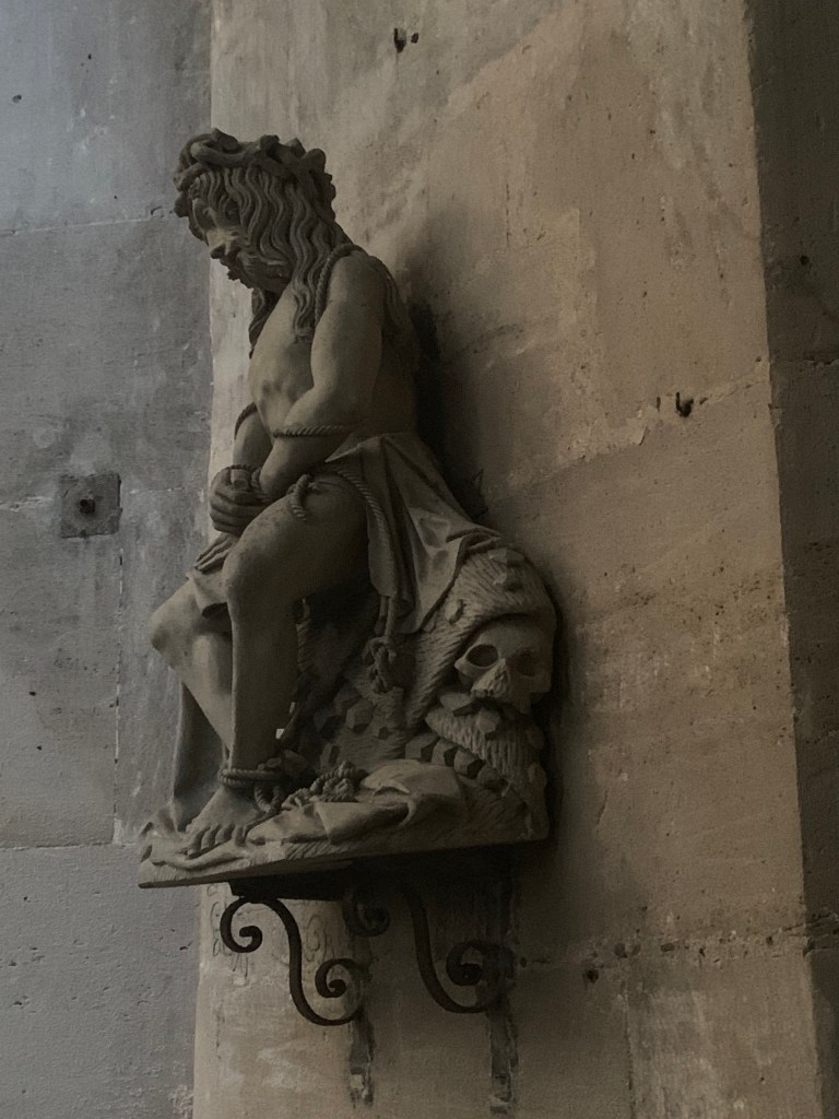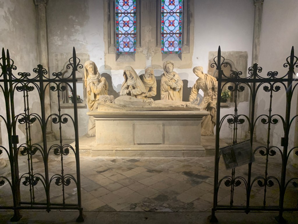 Prima di tutto ci imbattiamo una chiesa intitolata a Notre Dame (come in ogni cittadina francese), dove entriamo – aprendo con difficoltà una porta in legno che fa resistenza -, trovandoci immersi in un’oscurità quasi totale, in perfetta solitudine e nel silenzio assoluto. Scopriamo, man mano che la vista si abitua, alcuni scorci e opere interessanti.