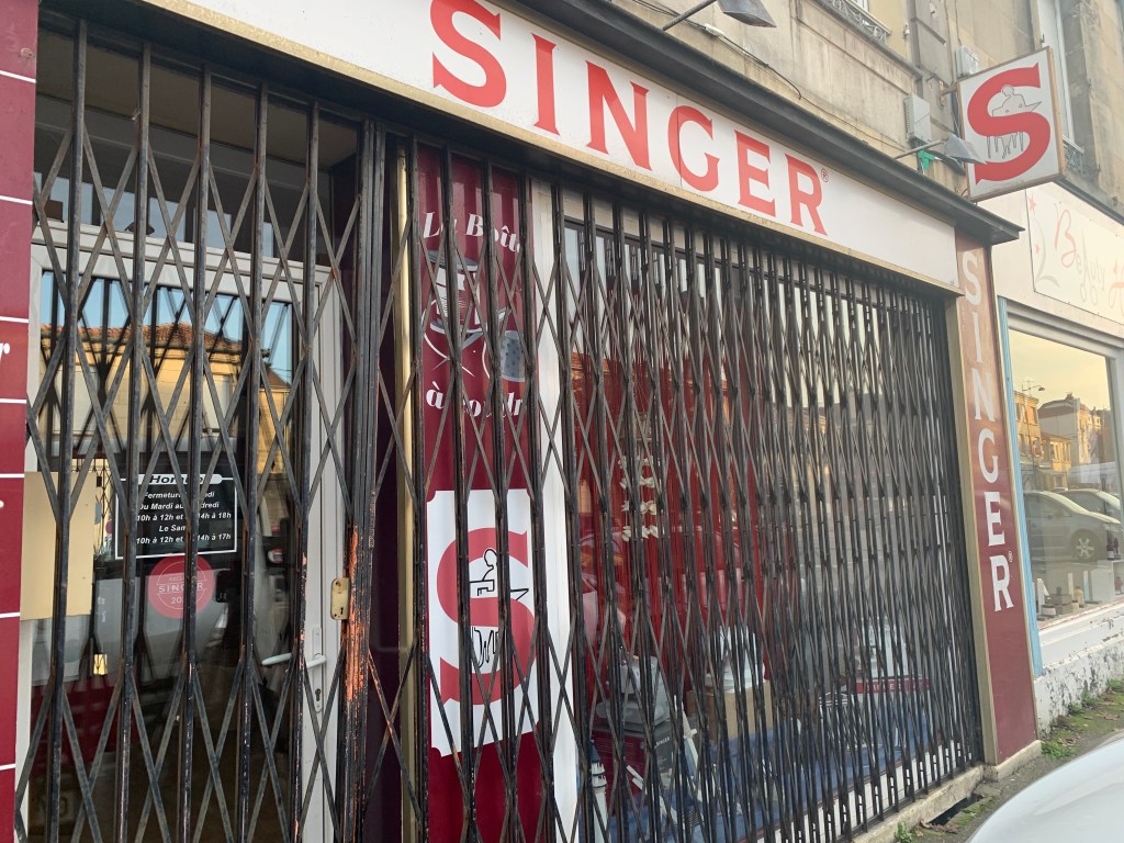 Arrivando al nostro punto di riferimento, lungo un rettilineo che dalla periferia ci conduce fino alla piazza principale e che in centro prende il nome di Avenue de la République scorgo al volo l’insegna. Così, durante la passeggiata a piedi – un via vai tra strada principale e strade limitrofe – raggiungo la vetrina con l’insegna La boÎtre a coudre /SINGER.