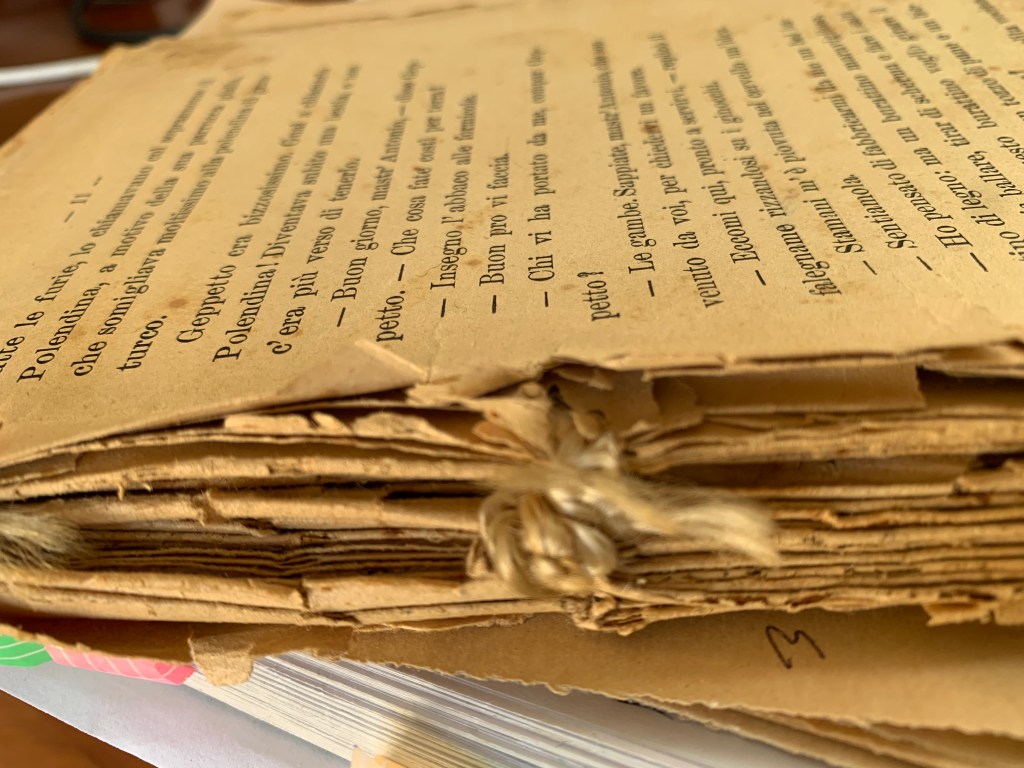Così, riorganizzando i libri ne recupero uno decisamente malridotto, sicuramente antico, completamente dimenticato.