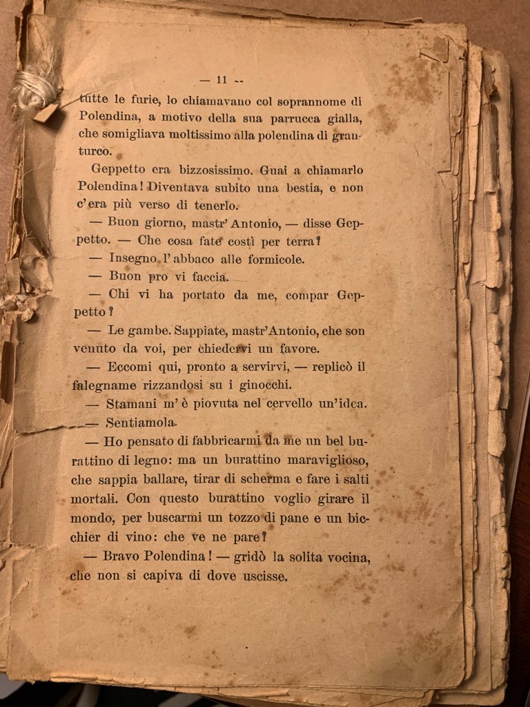 Così preferisco immaginarla a sfogliare il Pinocchio scompaginato che ho tra le mani, mentre apprezzava il perfetto italiano/toscano ottocentesco di Carlo Collodi!