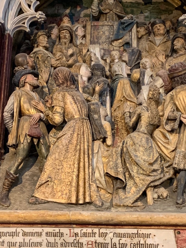 Tuttavia, è impossibile rinunciare alla visita della cattedrale gotica dove indugiamo a lungo – anche per non disturbare la funzione religiosa in cui ci siamo trovati immersi – e dove il freddo si fa sentire ma dove siamo almeno al riparo dall’umidità.