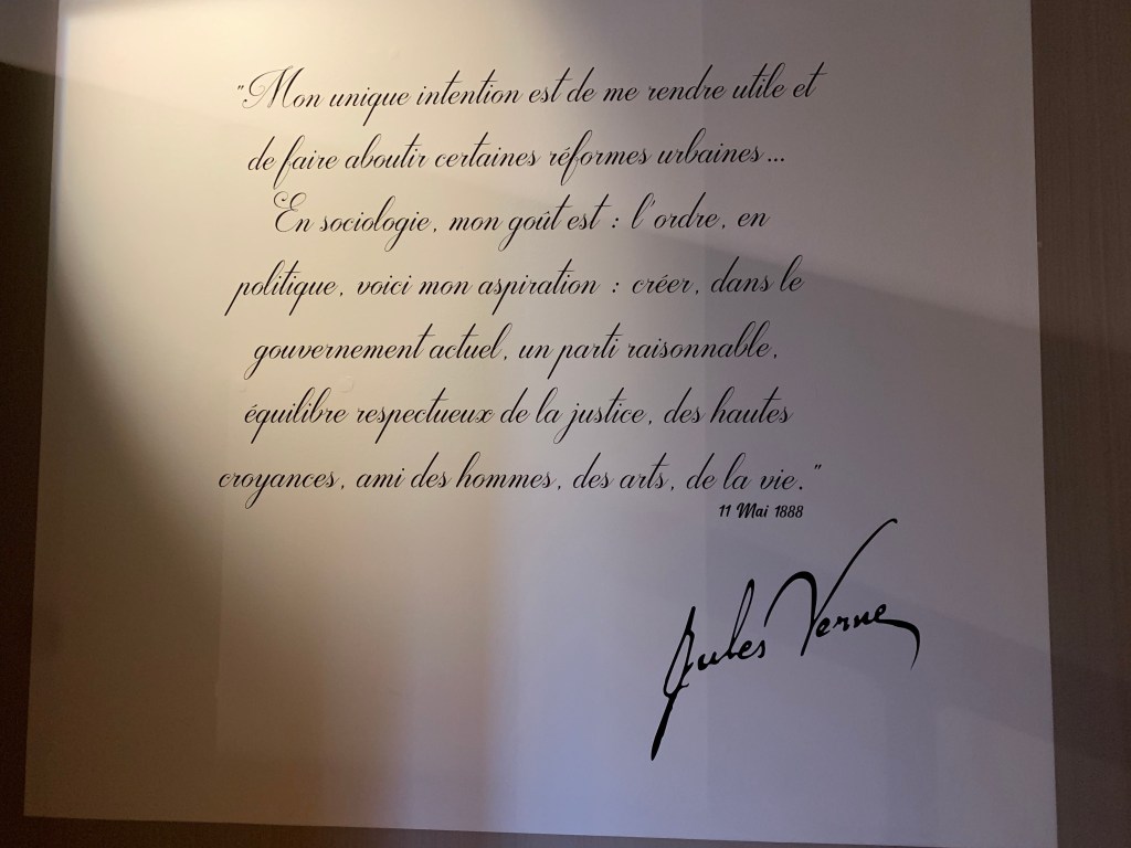 Anche se non si tratta di un soggiorno ma solo di una tappa di trasferimento, è impossibile rinunciare almeno a un’altra meta, la Casa Museo di Jules Verne, originario di Nantes ma trapiantato stabilmente ad Amiens. Come si può tralasciare l’occasione di visitare la casa di uno scrittore che ha dedicato la vita ai viaggi e a scrivere di viaggio, tra realtà e finzione, tra romanzi d’avventura e romanzi fantascientifici? Anche se non è il ‘mio’ genere e pur non avendone letti molti (tra questi, ad esempio, non rileggerei Il giro del mondo in 80 giorni), subisco il fascino della ‘casa dello scrittore’ e, in genere, dei diari degli scrittori. Sono due tra gli aspetti che permettono di comprenderne la produzione.