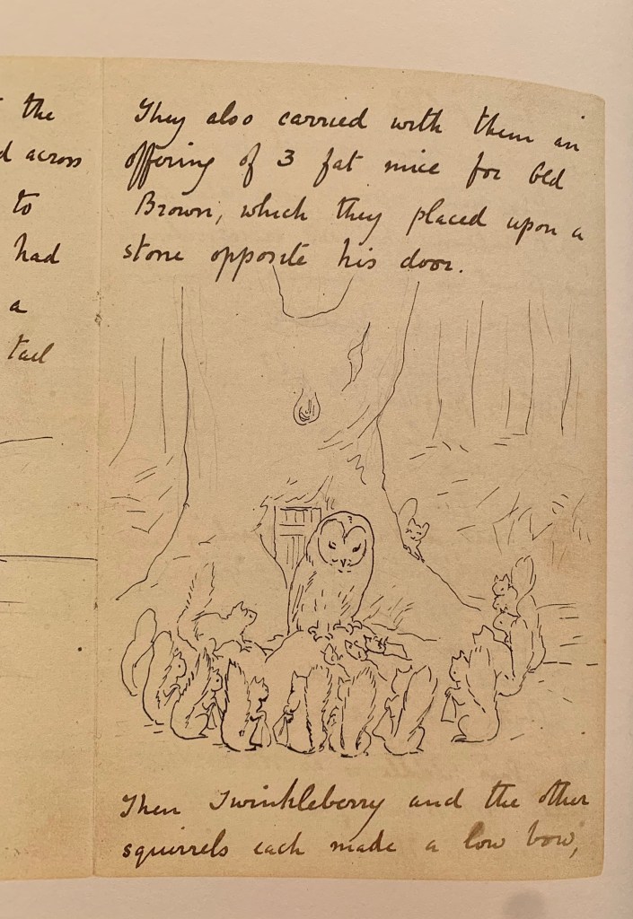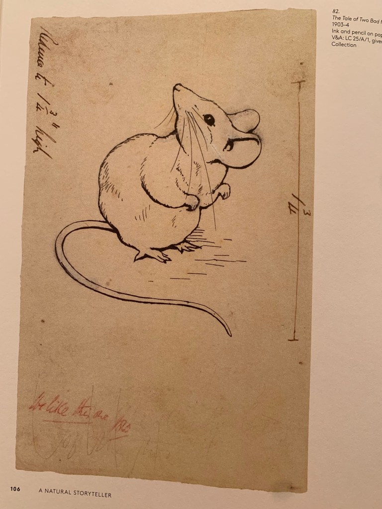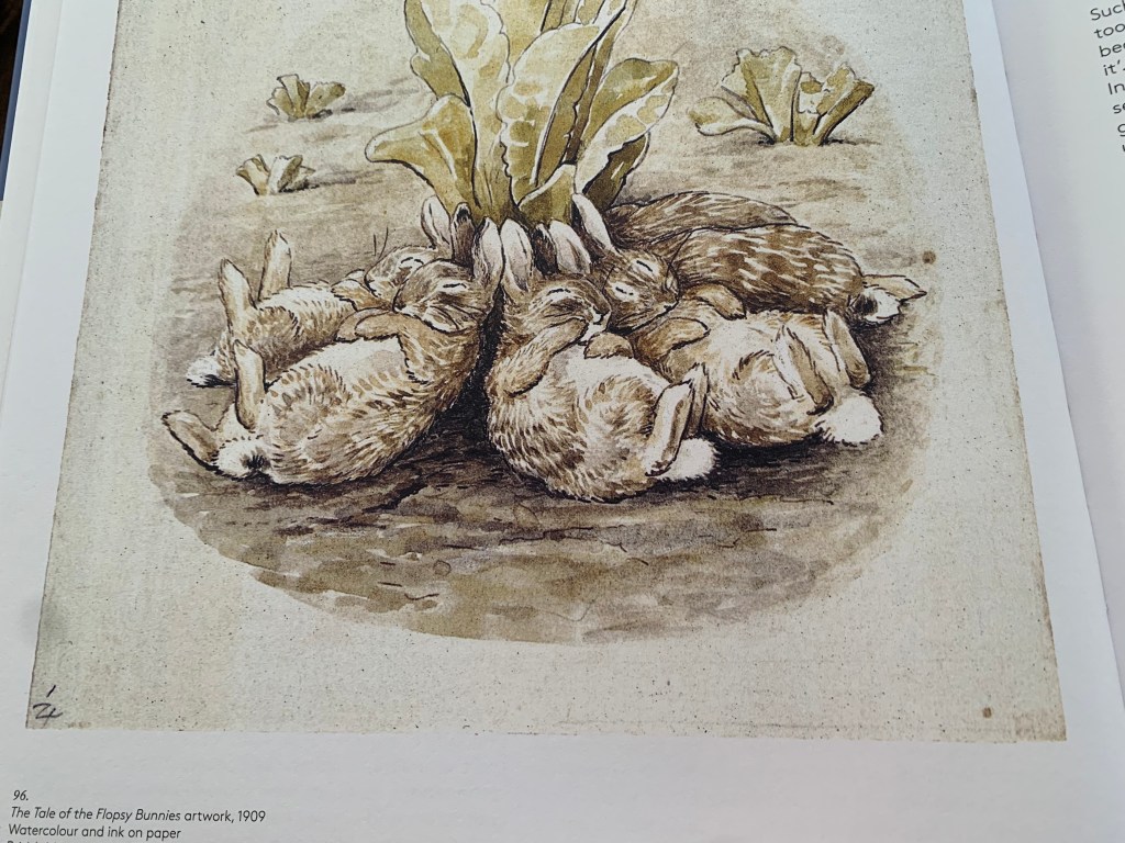 Sala dopo sala, i visitatori hanno avuto la possibilità di osservare i disegni originali di Beatrix Potter su cartoline, fogli, lettere, libri, un enorme patrimonio che fa parte delle raccolte del V&A Museum e che possono divenire oggetto di mostre come è accaduto con Drawn to nature che si è chiusa l’8 gennaio 2023 e della quale rimane disponibile l’omonimo catalogo. Anche questa mostra testimonia, indirettamente, come l’idea di ‘permeabilità’ delle città sia diretta conseguenza del processo di cementificazione che attraverso un secolo e poco più ha portato l’uomo ha pensare di poter escludere la natura dalle proprie città, senza lasciarle il necessario sfogo, nella irragionevole e presuntuosa convinzione che non si sarebbe ribellata, in un modo o nell’altro!