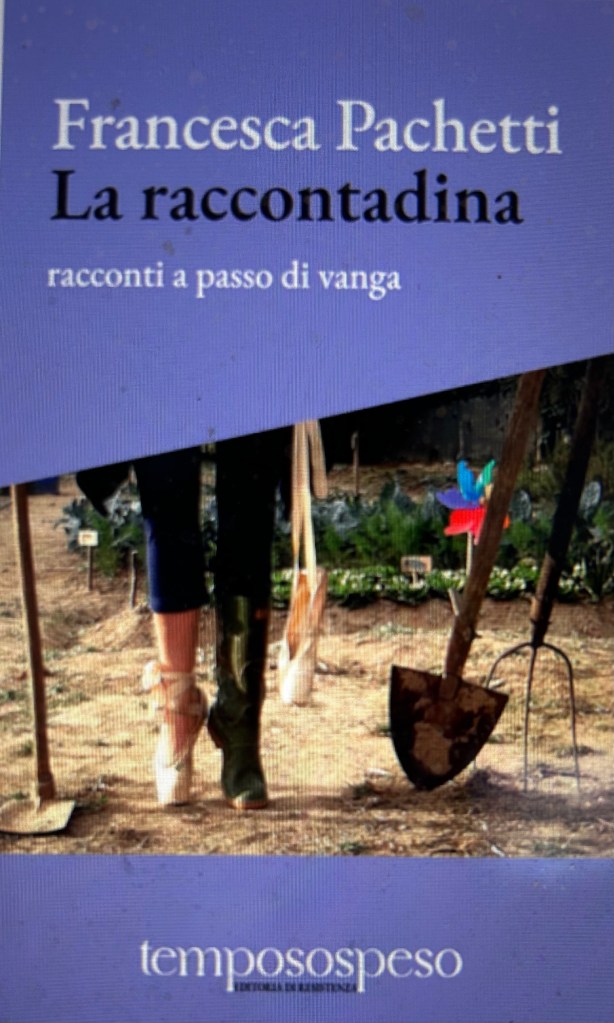 Il titolo del libro è il risultato di un’originale fusione tra due termini (racconto – o raccontare, il risultato non cambia – e contadina). Un’intuizione felice di Francesca Pachetti, originariamente utilizzata per la sua pagina Facebook, attiva dal 2017, e divenuta titolo del libro nel 2019 per i tipi Pentàgora. Chiusa l’esperienza di Pentàgora, La raccontadina è ora ripubblicato da temposospeso, editoria di resistenza la cui redazione, forte dell’esperienza precedente, si propone di portarla avanti per “contribuire – attraverso la cultura del libro – a rispondere a un diffuso bisogno di autenticità, di senso e aderenza con la vita: per questo, incoraggiamo narrazioni dove le persone sono storie e le storie sono improntate alla vita quotidiana, ma anche riflessioni e sguardi disallineati con le mode e le monoculture di questo tempo, per pubblicare libri che desideriamo nutrienti, mai effimeri, se possibile necessari”.
