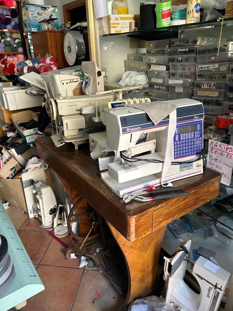 Alcune domande, sorte spontaneamente, ci hanno permesso di avere una sorta di biografia di Dante, ossia del proprietario. Una vita da tornitore, specializzatosi in riparazione di macchina da cucire di ogni marca e di ogni dimensione … Di ognuna sa tutto e ricorda tutto, di quelle riparate e consegnate e di quelle accatastate nella bottega in un ordine che a noi sfugge completamente ma che a Dante è chiarissimo, in tutto il negozio. Tante da essere quasi una collezione. Ognuna con la sua storia e la storia di chi l’ha utilizzata per una vita.