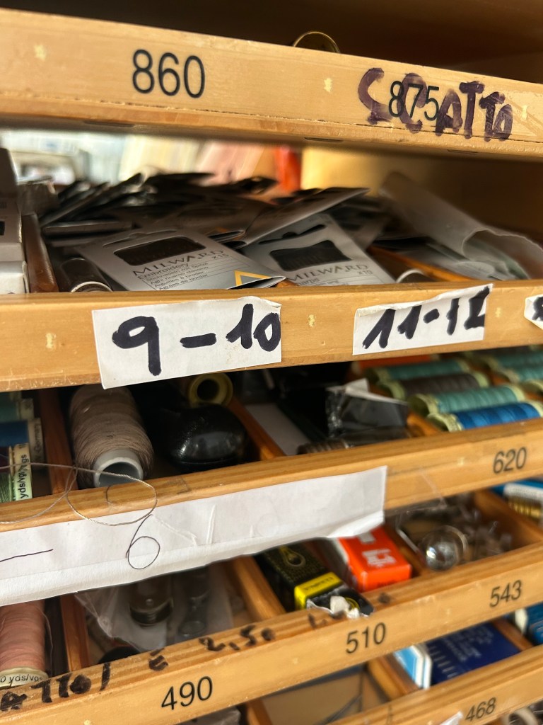 Quando infine la cliente è uscita, il proprietario ci ha accolto, gli ho chiesto la lampo invisibile che è andato a recuperare in uno dei numerosissimi scaffali ricolmi, come se fosse stata nei suoi pensieri fino a quel momento e, dunque, senza nessuna incertezza.