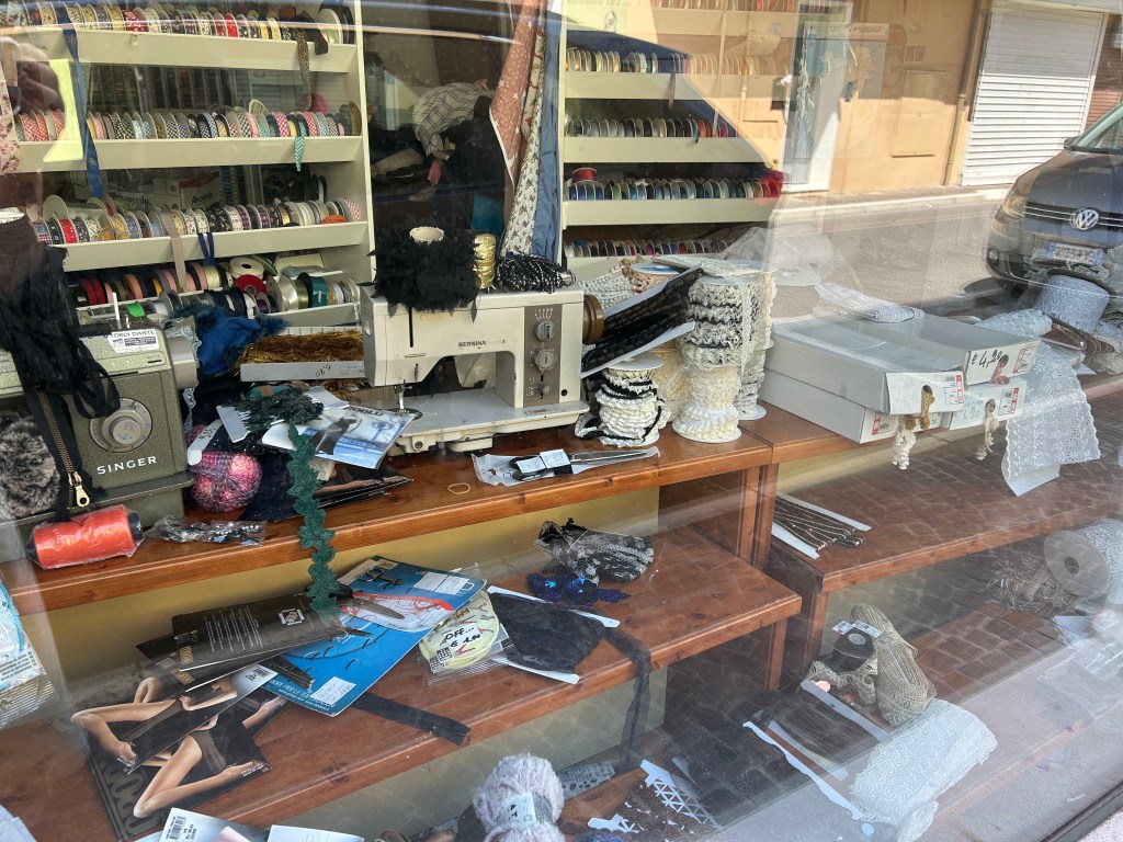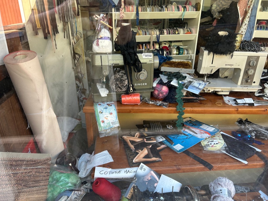 e con una merceria che sembra uscita direttamente da altri tempi, lontani almeno qualche decennio. In tempi di Mostrascambio, ci è sfuggita, pur trovandosi ai margini del percorso.