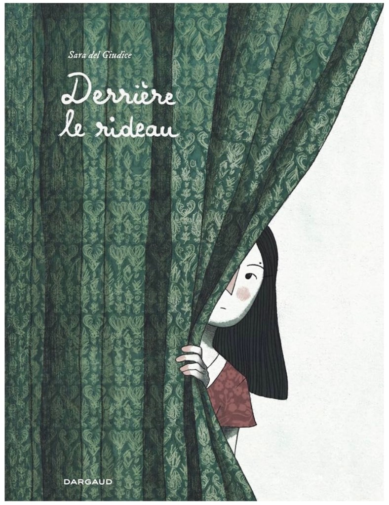 Ed è impossibile concludere la visita senza una sosta nella libreria dove, come sempre in qualsiasi libreria, il problema è scegliere tra i tanti titoli disponibili quello che sicuramente non deluderà e rimarrà ricordo indelebile della visita. In questo caso, escludendo i saggi troppo corposi che sarebbero al di sopra delle mie possibilità in lingua originale, mi soffermo su una ricca esposizione di fumetti. Tra tanti, mi attira la copertina di un album di dimensioni piuttosto grandi, quasi completamente occupata da una tenda di pesante tessuto operato sui toni del verde. Nel lato destro, si staglia la figura seminascosta di una ragazzina su fondo bianco.