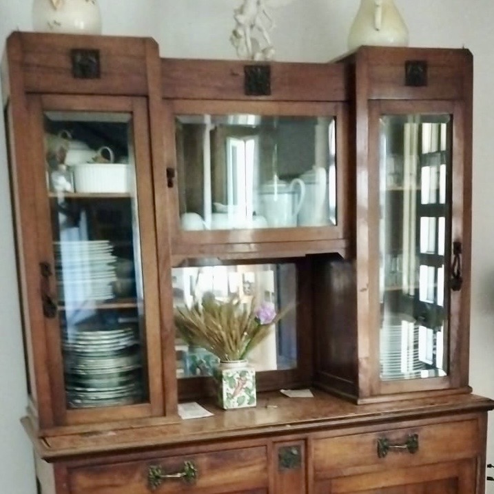 Il presepe – piccolo, allestito in una rientranza della credenza Anni Venti (proprio quella della foto, grazie a mio cugino che l’ha conservata!) – era lì a ricordare che le festività, dall’Avvento fino all’Epifania, erano prima di tutto ricorrenze dell’anno liturgico, sostituito oggi dall’albero addobbato (ahimè, spesso proveniente da apposite piantagioni da tagliare nell’imminenza della festività).