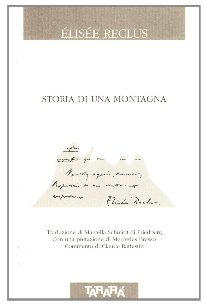 A lettura completata, ho scoperto la versione cartacea di Storia di una montagna per i tipi della casa editrice Tararà di Verbania (2008), arricchita da una prefazione di Mercedes Bresso, dal commento di Claude Raffestin e, soprattutto, con una nuova traduzione, di Marcella Schmidt di Friedberg. Non è detto che non decida di procurami anche questa edizione, soprattutto per il commento di Raffestin (autore tra l’altro di Per una geografia del potere, Unicopli 2008) e per la traduzione che sicuramente aggiorna notevolmente quella ormai superata di inizio secolo scorso che, tra l’altro, presenta la ricorrenza di forme ortografiche considerate desuete (come si evince molto chiaramente da Aldo Gabrielli, Si dice o non si dice? Guida pratica allo scrivere e al parlare, Mondadori 1976, ad esempio, roccie/quercie/erbaccie, ecc. in luogo della normativa corrente rocce, querce, erbacce).