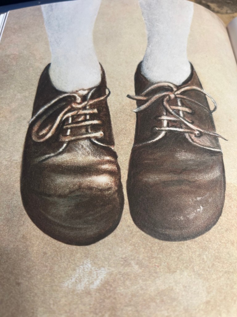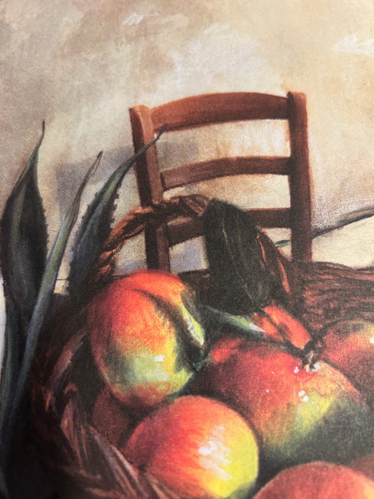 Le parole e in disegni (quelli piccoli, ad apertura di ciascun capitolo e le tavole a pagina intera), in perfetta sintonia, lo rappresentano fin nei particolari, evocando i colori della terra del fango del pane … e gli odori (quello del fumo che impregna l’ambiente e le cose, su tutti).