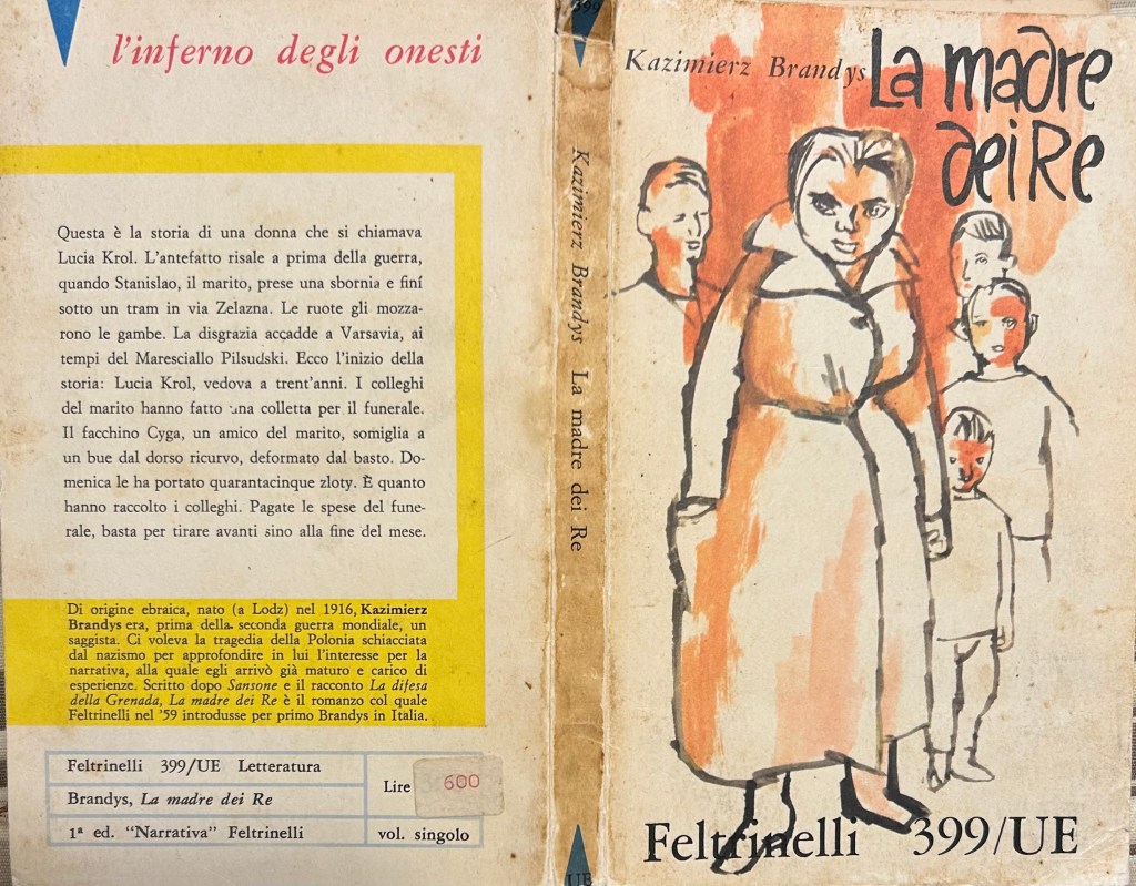 Mi interrogo a questo punto sul motivo per cui l’ho acquistato. Con ogni probabilità mi ha attirato l’edizione (è il numero 399 della Universale Economica Feltrinelli), così come, in quarta di copertina un’epigrafe in caratteri rossi più grandi rispetto alla sinossi e alle notizie sull’autore: “l’inferno degli onesti”. Forse anche il disegno in copertina dell’illustratore svizzero Heiri Steiner (1906) con in primo piano il disegno di una donna i cui lineamenti trasmettono – mi sembra – l’idea di non essere disposta a lasciarsi piegare dalla vita. La madre dei re è il titolo. L’autore è Kazimierz Brandys (1916-2000).