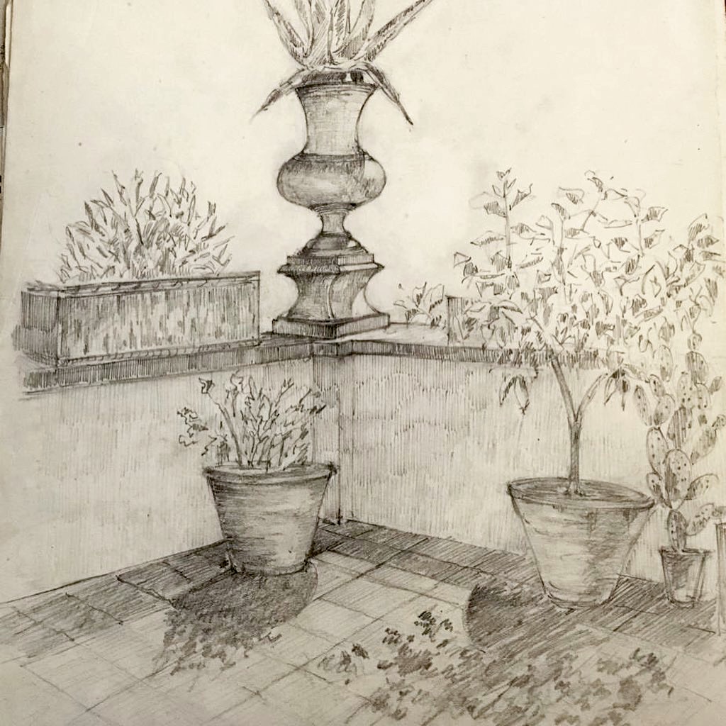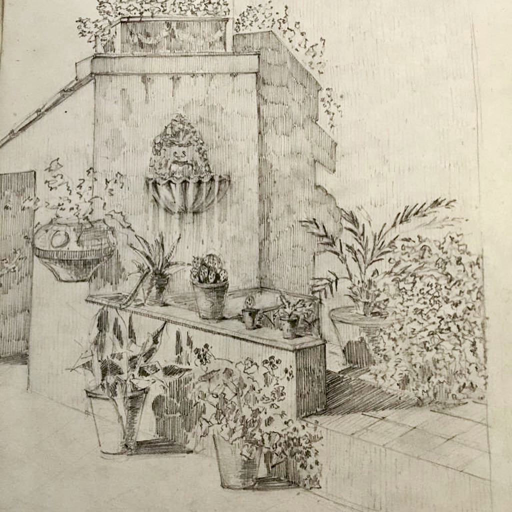 Il terrazzo raffigurato nei disegni sottostanti è stato eseguito a matita negli Anni Quaranta del secolo scorso da Emilia Petroselli (Viterbo, 1924 – 2018). chi scrive è nata in quella casa e cresciuta in quel terrazzo e ha piacere di dedicarli all’autrice, Zena Roncada.